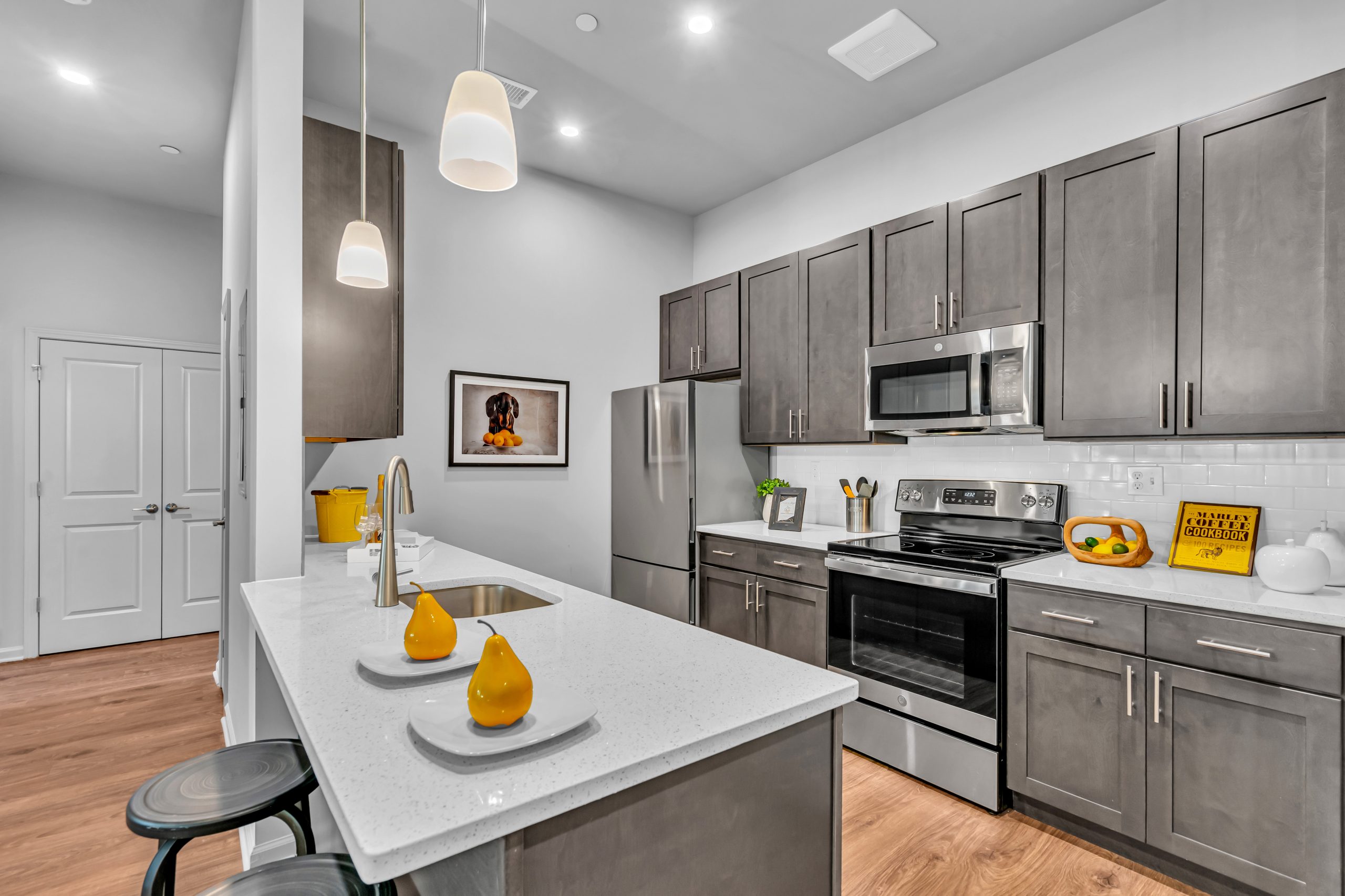- Luxury Vinyl Plank in main living areas throughout (except bathrooms) in first floor apartments